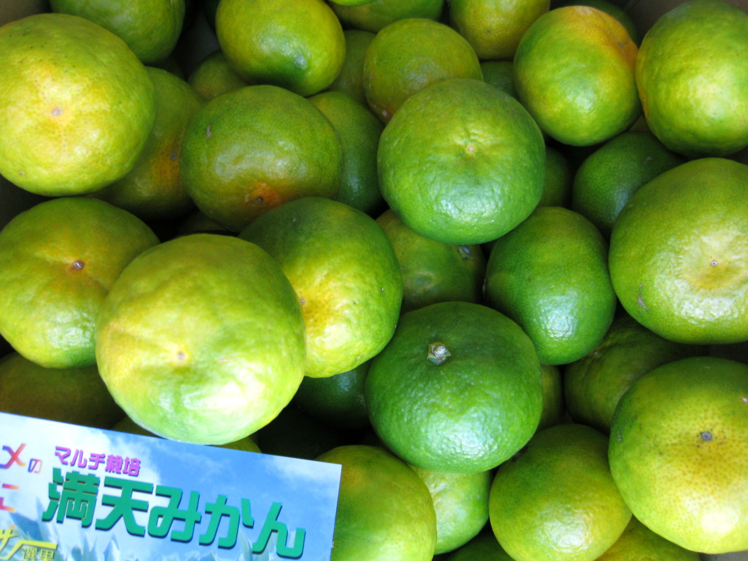 「極早生の青切り」といえば昔は酸っぱいイメージでしたが、近年では「マルチ栽培」(木の根の周りにビニールシートを敷いて水分の侵入を防ぐ農法)も一般化し、香りが良くて酸味が弱い ”おいしい” 青切りミカンがたくさん出荷されています。